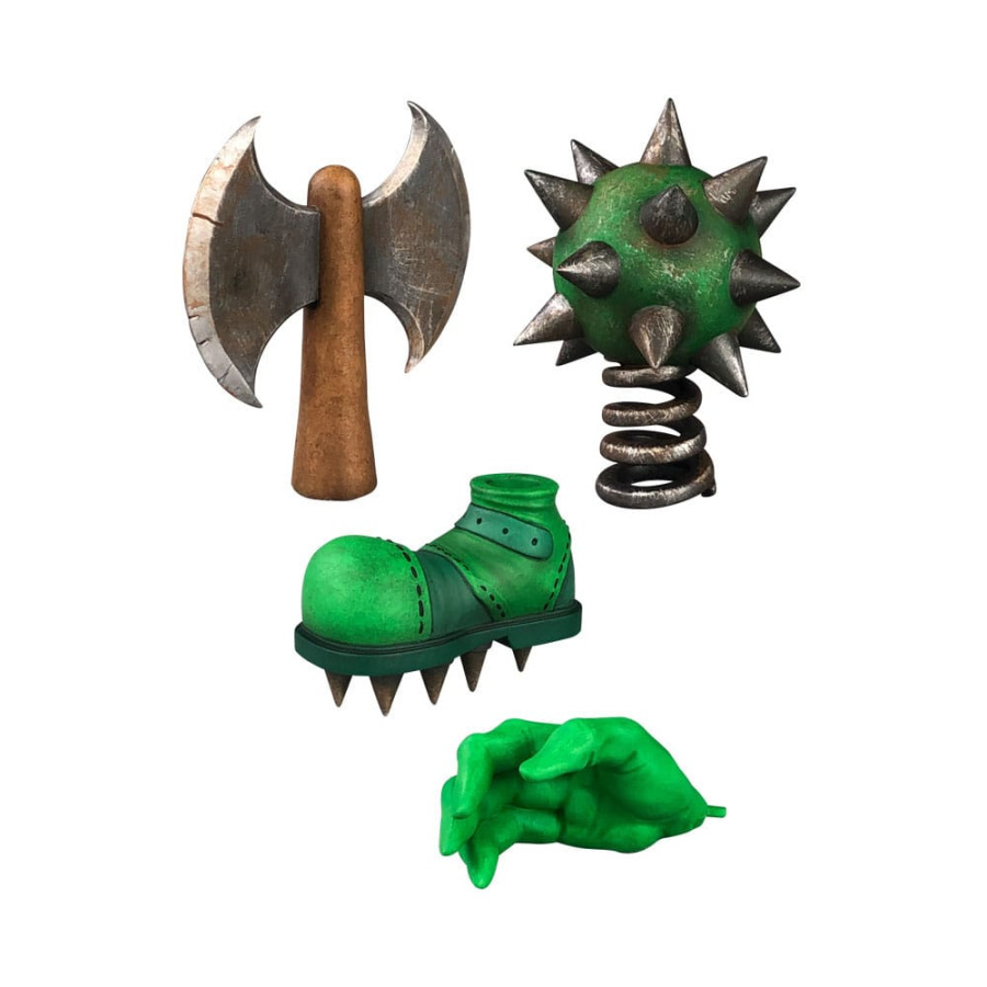 Rash is the most outgoing and coolest of the Battletoads. Don't believe it? Just ask him! Rash stands just under 6" tall and features 30 points of articulation for ultimate posing. Removable armbands and utility belt allow you to choose your favorite look for Rash. Other accessories include: removable sunglasses, 3 sets of hands, and 3 interchangeable kicking attachments--a giant spiked mace, giant boot with spiked sole, and giant axe!