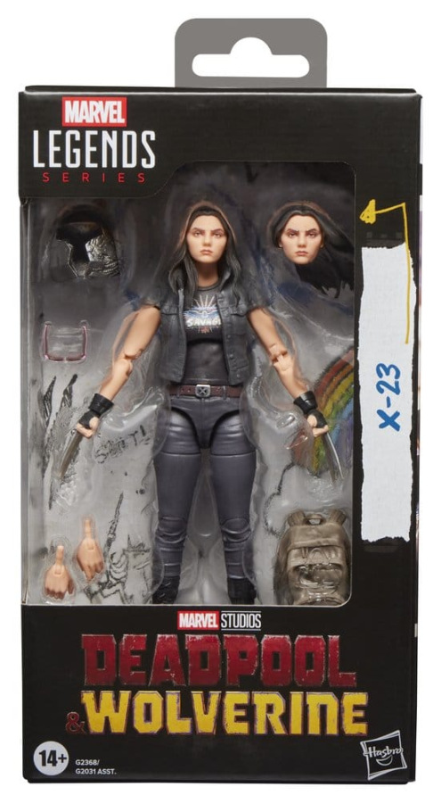 Bring the excitement and wonder of the Marvel Universe to your collection with this Hasbro Marvel Legends X-23 action figure! This collectible 6-inch scale Marvel figure is detailed to look like the character's appearance in Marvel Studios' Deadpool & Wolverine. X-23 figure is fully articulated with premium design and poseable head, arms, and legs. Marvel action figure set comes with 6 accessories, including alternate head and hands to display her with or without claws and sunglasses. Hasbro Marvel action figures' 6 inch scale make them great for displaying in fans' collections. Reimagine movie-inspired scenes on your shelf with Marvel Legends action figures and Marvel collectibles.