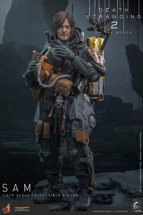 Sideshow and Hot Toys are is honored to announce the Sam Sixth Scale Collectible Figure, faithfully capturing Reedus's in-game likeness. The action figure features a newly sculpted head with separate rolling eyeballs and finely detailed dark brown hair sculpt. His Drawbridge suit incorporates a UV luminous reflective effect, complemented by a full-body utility harness, a detachable Battle Skeleton, back armor with an Odradek scanner, and transporter boots - all weathered for authentic, worn realism. Equipped with nine gloved hands, Sam is ready for any display scenario. His weapon arsenal features a Strand, Machine Pistol, LW Assault Rifle Lv2, and a folded Blood Boomerang attachable to his harness.