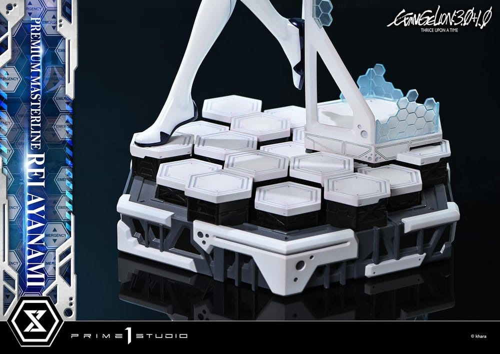 From ""EVANGELION: 3.0+1.0 THRICE UPON A TIME"", which brought more than a quarter-century of storytelling to a close, Rei Ayanami is realized as a Premium Masterline statue.