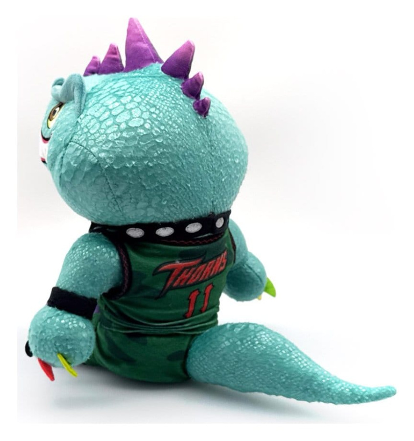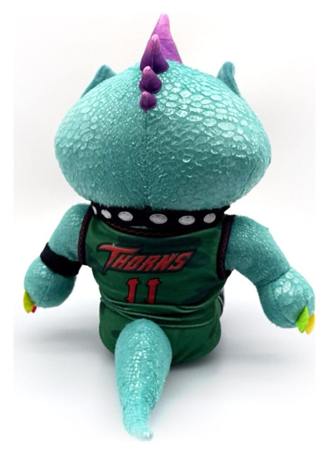 Can you hear the crowd roar? Feel the intensity of the teams?! A Roarball game must be about to kick off! Modo has pounced off the field and into Youtooz for his plush debut! Sitting at 9 inches tall and wearing purple sneakers with black flames along with a green camo Thorns uniform over his Komodo Dragon skin, dark green scales speckle his shoulders and face as a sharp toothed grin stretches under yellow eyes. With sharp purple horns creating a mohawk over his head, he's accessorized with multicolored nails, a black armband and a gold septum piercing as a long tail relaxes behind him. This plush is packed to the seams with 100% PP cotton and is made of minky, tricot and faux lizard skin materials with accents of felt, perfect for cuddling or playing Roarball with!
