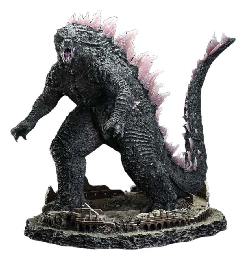 The specially designed base is inspired by the Colosseum, depicted as Godzilla's resting ground. Ancient Roman architectural elements, crumbling ruins, and an arena buried beneath sand are all rendered with weathering that conveys the passage of time. Together, they evoke the weight and dignity befitting the king's stronghold.