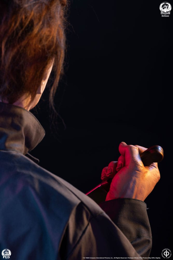 The Deluxe Edition boasts a full torso allowing Michael to clutch his signature knife in his hand adding an extra layer of terror to this life-sized collectible. This version is situated on a simple museum style base measuring roughly 13" wide and 9"deep.