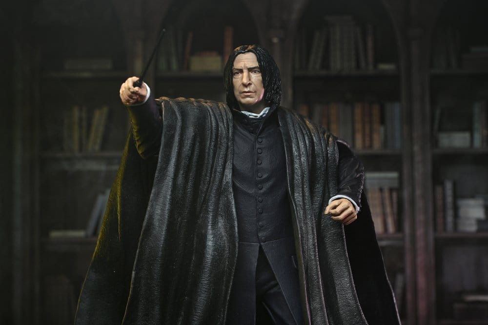 NECA's Harry Potter movie figures are back to celebrate the magic of the wizarding world. Wave 1 of the Legacy Collection includes four iconic characters inspired by pivotal scenes from the 8-film series. Severus Snape, the Potions Master at Hogwarts, has always kept a close eye on Harry despite their mutual animosity towards each other. This 7-inch scale action figure of Professor Snape includes his wand and black cloak and comes in window box packaging. Bring home this magical collection of NECA Harry Potter figures and let the sorcery begin! Size: 17.8 cm (7.00")