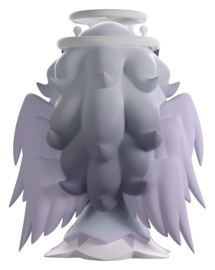 Sera has seen that sinners really can be saved and has come to Youtooz to witness our redemption! Wait... we're not sinners... are we? Standing at 5 inches tall with her hands crossed at the front as a pair of large grey and blue eyes look out from above, freckled cheeks, a pair of halos rest atop the long grey-white hair that falls down past her waist, as elegant pink and white wings fan out from her shoulders. Wearing an angelic dress that has a high collar and sleeves that come over her hands, its rounded white shoulders match her forearms as a diamond pattern runs down its two tiered silhouette. The exterior of her packaging looks down on an intricate golden dial, while the interior is filled with swirling clouds against an orange and purple sky. The protective sleeve is then designed to show off a dark cityscape as her figure can be seen through the large clear window at the packaging's front. This collectible ships in a matte, embossed, protective outer sleeve and a custom-sized plastic protector for maximum protection during shipping.