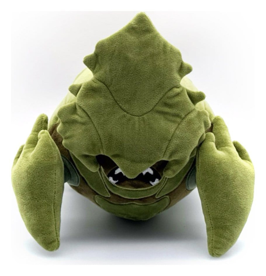It’s nearly impossible to stop a charger, but do you really want to stop this charger?! Standing on four pointed legs at 9 inches tall with a tooth-filled mouth peeking out from the dark green exoskeleton armour that covers their face in thick angular plates, short grey legs extend from their sturdy protected carapace that has matching armour plating and a light brown end. This plush is packed to the seams with 100% PP cotton and is made of the softest minky material, absolutely perfect for cuddling or trampling your enemies with!
