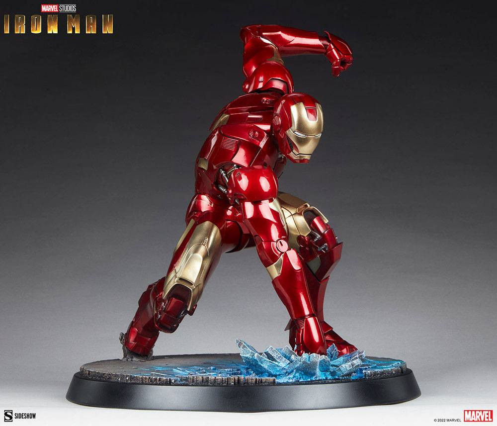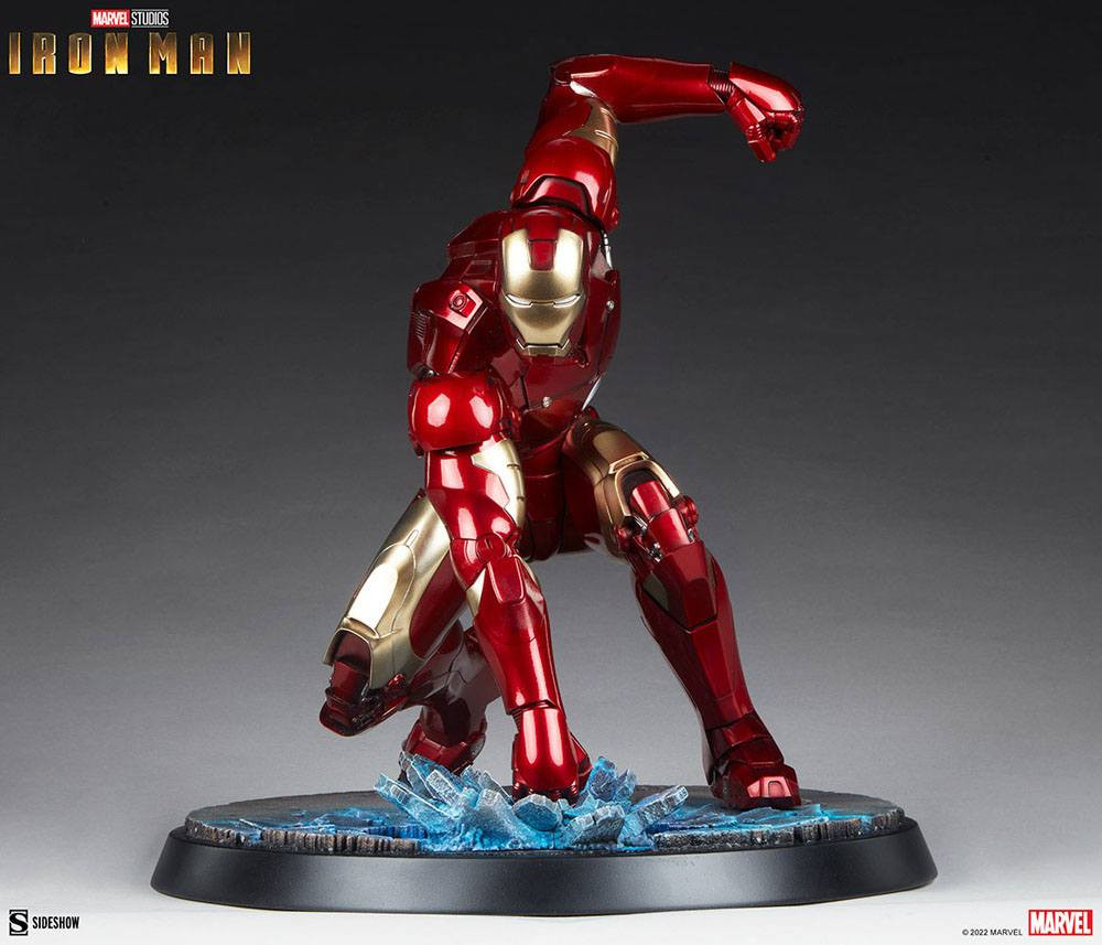 The Iron Man Mark III Maquette measures 16" tall and 15.5" wide as a suited-up Tony Stark lands in a dynamic fighting stance. His gold and red armor gleams while he prepares his next attack, with one fist pulled back to punch and his other hand breaking the ground beneath him. Blue repulsor energy fills the cracks, reminding Iron Man's enemies of the awesome power built into the Avenger's upgraded suit. This faithful recreation of an iconic, intricately designed costume will bring the MCU right from the silver screen to your shelf.