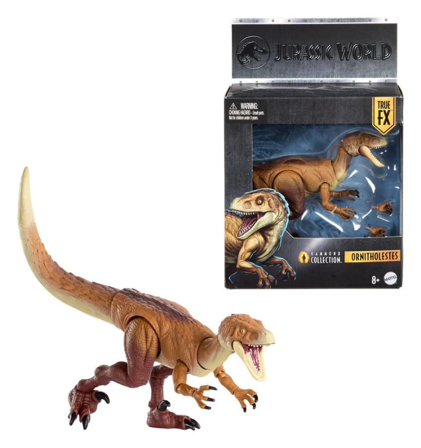 This action figure of an Ornitholestes dinosaur from the Jurassic World universe expands the Hammond Collection. Named after the innovative creator of Jurassic Park, the series is inspired by the adventures of the Jurassic World franchise and sets a new standard of quality for collectible dinosaur figures. The high-quality design of the Ornitholestes features 18 points of articulation, lifelike eyes and a movable tail. A set of interchangeable, battle-ready claws is included. Jurassic World collectors aged 8 and up will want this approximately 23 cm tall dinosaur in their collection. Colours and design may vary.