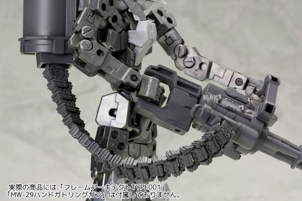 The 30th addition to the line-up is the BELT LINKS set containing a large-sized magazine and ammo belt. Attaching it to the separately sold MW20 GATLING GUN or MW29 HAND GATLING GUN can recreate the form of a heavy machine gun.