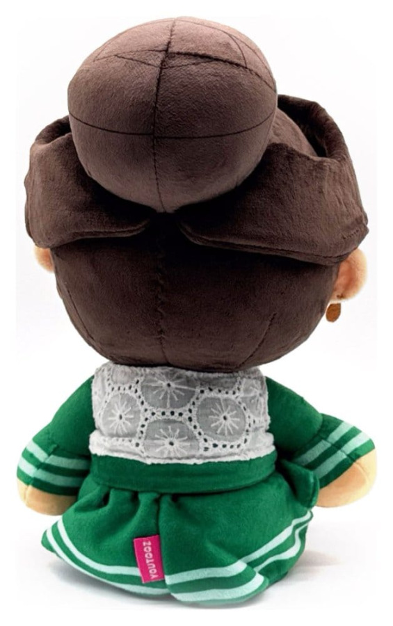 The Torrisi Crime Family is looking to expand their territory and they’ve got Youtooz in their sights! Sitting at 9 inches tall with light brown eyes and pursed pink lips as a pair of gold earrings hang from each ear, Isabella’s long brown hair is pulled into a bun at the top of her head and parts in the middle as she wears and emerald green dress with stripes on the hems and a bow on the waist along with a brown pendant hanging from her neck in the middle of white lace vest. This plush is packed to the seams with 100% PP cotton and is made of minky and tricot materials with accents of felt, absolutely perfect for cuddling or escaping with!