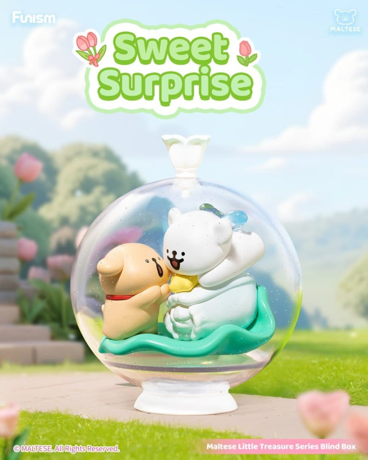 This display comes with 6 collectible figures from 'Maltese'. The figures are approx. 10 cm tall and are packaged in blind bags. There are 6 characters and 1 secret character to collect.