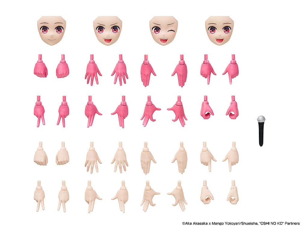 - Optional parts such as a microphone, eight types of hand parts, eight types of swimsuit hand parts, and display pedestals are included.