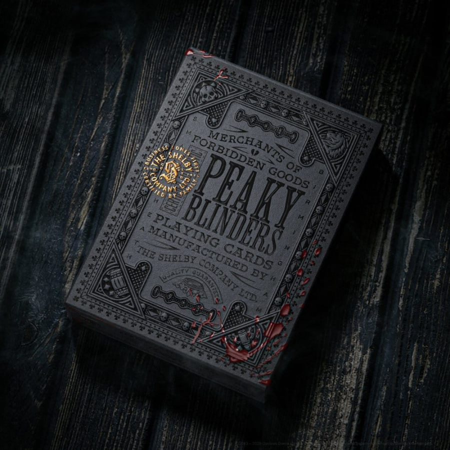 Peaky Blinders Playing Cards Inspired by the hit television series. Premium playing cards, by order of the Peaky Blinders. Forged In Smoke and Blood certified by family Meticulously crafted with tactile embossing and antique gold foil, finished with a little evidence of some business that had to be taken care of. You know what they say... don’t mess with the Peaky Blinders.