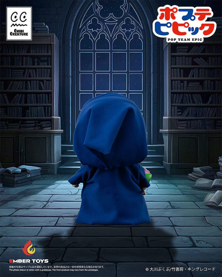 Wires are built into the edges of the cape, allowing it to be displayed as though fluttering in the wind. Popuko is clad in the Gargoyle Robe and equipped with the Rose Cane Her characteristic pigtails are removable, allowing you to place her hood over her head.