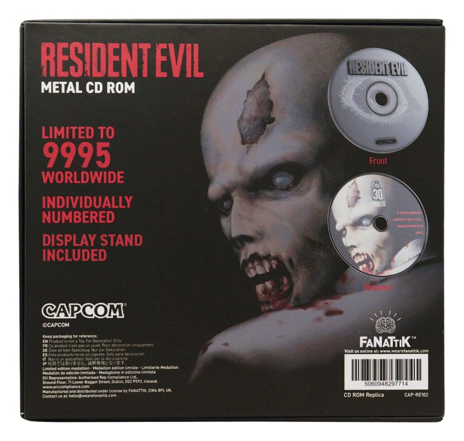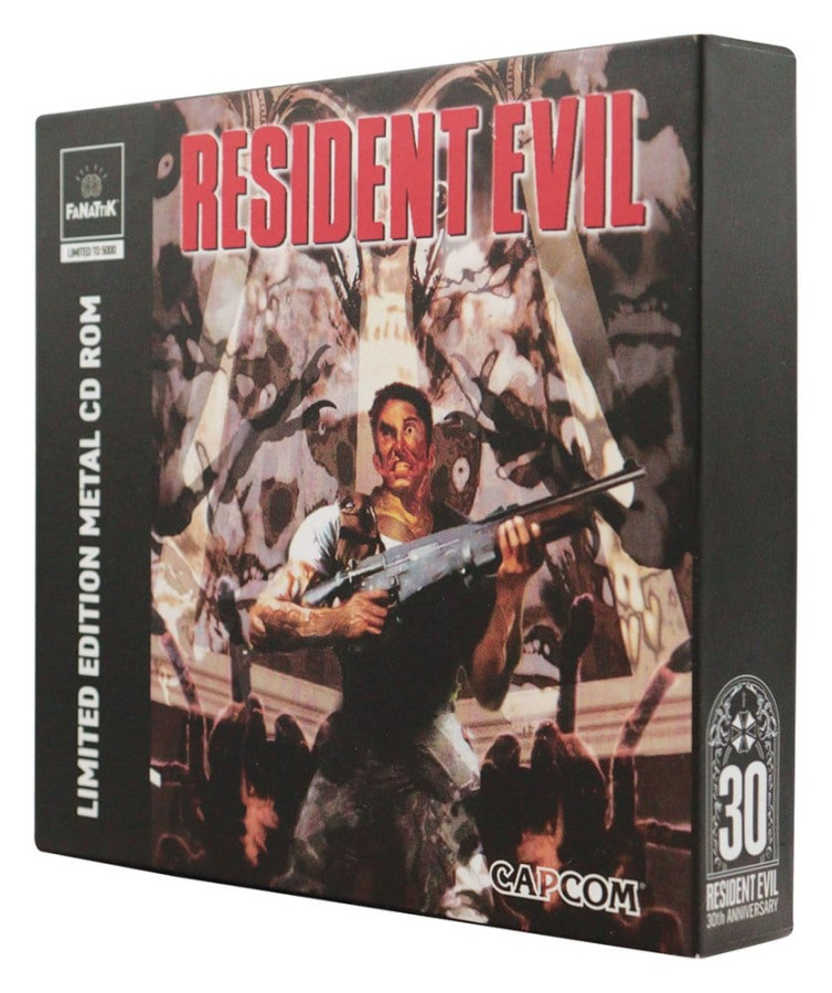 Step back into the world of survival horror with this 30th Anniversary Limited Edition Resident Evil metal CD-ROM Replica! This special collector’s piece, styled with retro- inspired artwork and finished to mimic the classic game CD, is supplied within a PS1-styled case with an additional hinged card box.