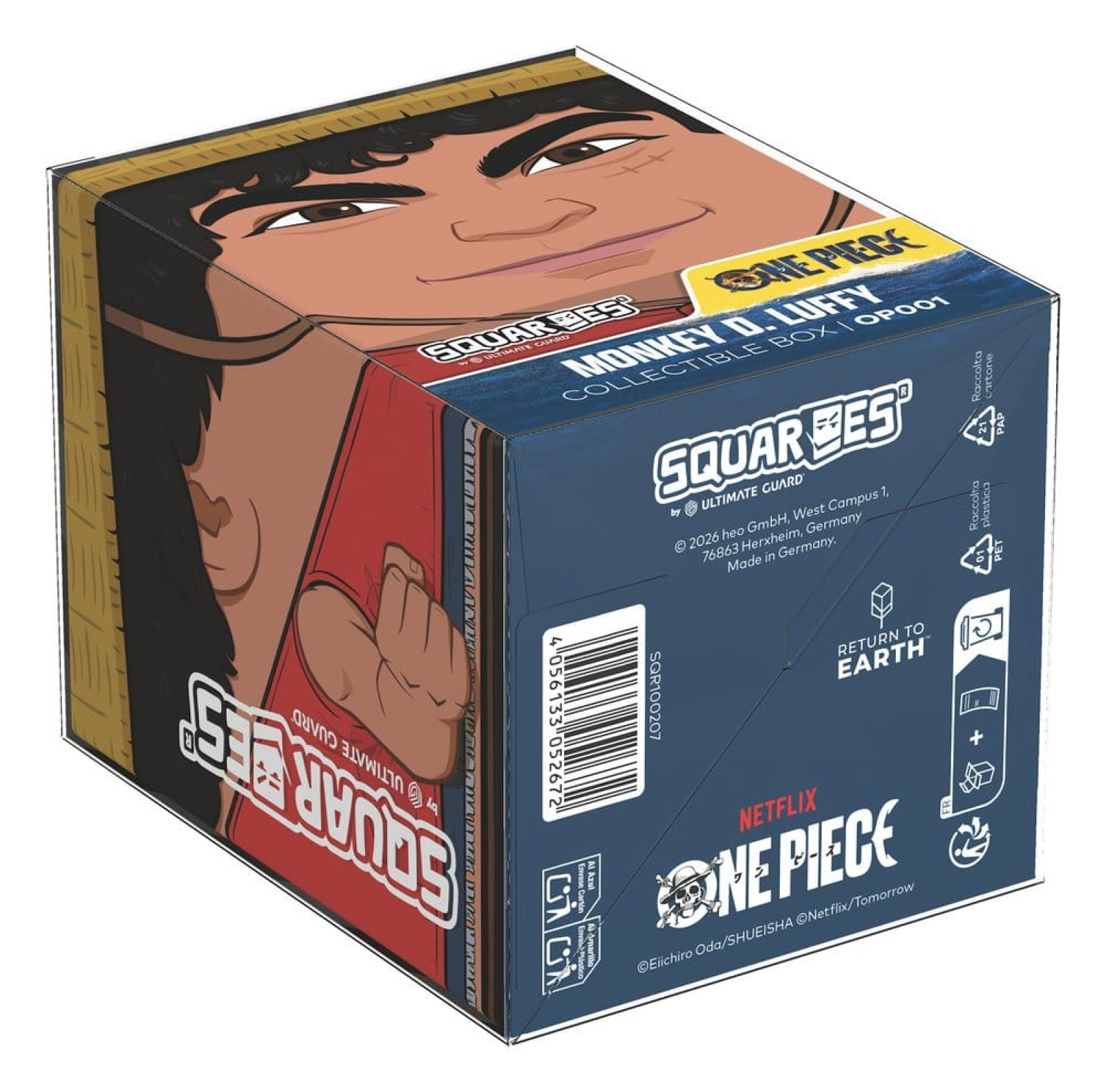 Squaroes by Ultimate Guard are the next generation of TCG gaming accessories! Crafted from high-quality, 78% sustainable materials they combine outstanding card protection with collectibility through exclusive designs, limited one-off printings, and deck boxes available in varying rarities. The ONE PIECE Squaroes hold up to 100 standard- or Japanese-sized trading cards (from games like Magic: The Gathering, Pokémon, Lorcana, Flesh and Blood, Yu-Gi-Oh!, Riftbound, and One Piece) in double protective sleeves*. As a new spin on Ultimate Guard's fan-favorite Boulder deck box, Squaroes offer an ultra-sturdy case with a secure closure, while staying easy and convenient to open.