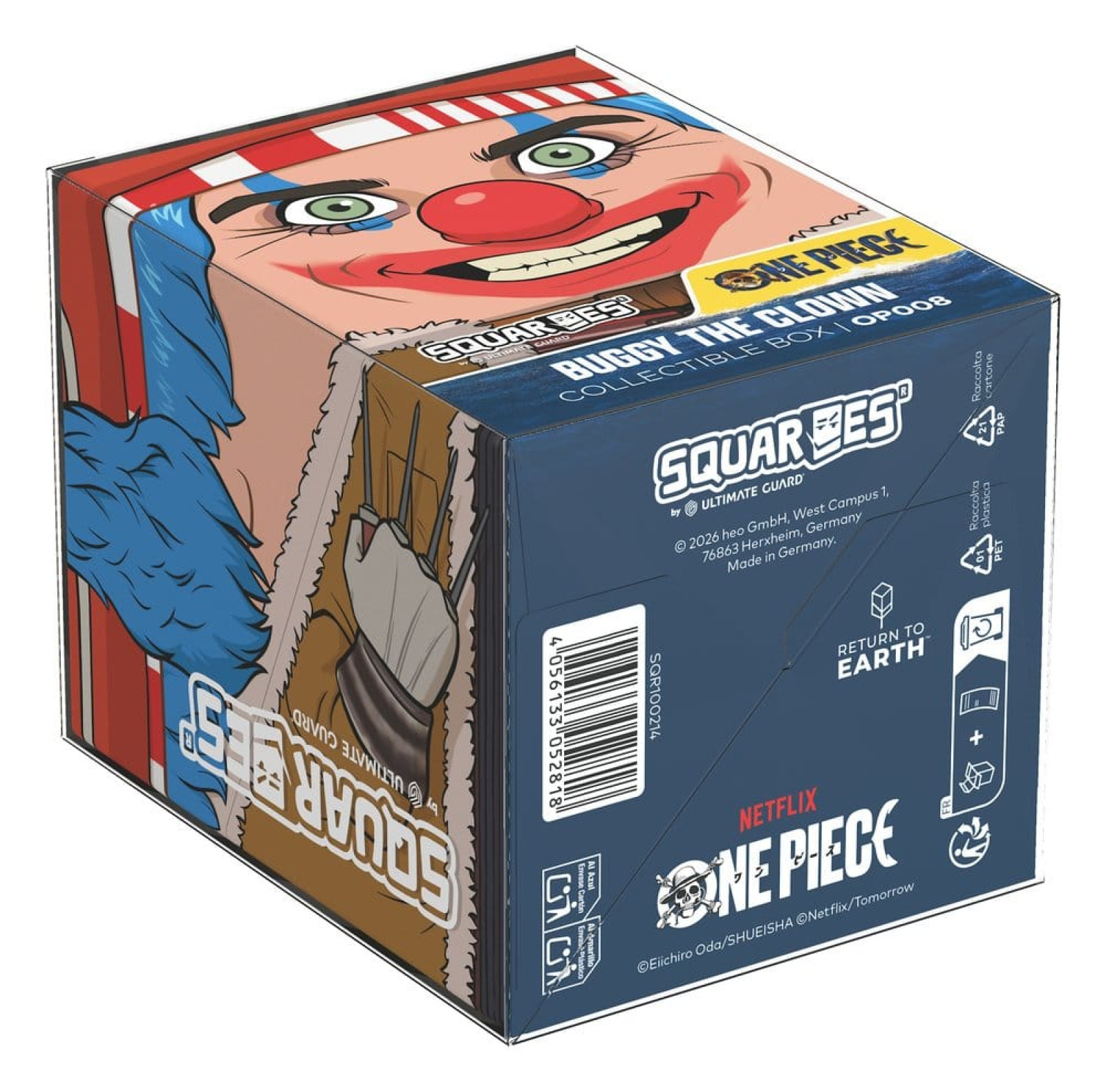 Squaroes by Ultimate Guard are the next generation of TCG gaming accessories! Crafted from high-quality, 78% sustainable materials they combine outstanding card protection with collectibility through exclusive designs, limited one-off printings, and deck boxes available in varying rarities. The ONE PIECE Squaroes hold up to 100 standard- or Japanese-sized trading cards (from games like Magic: The Gathering, Pokémon, Lorcana, Flesh and Blood, Yu-Gi-Oh!, Riftbound, and One Piece) in double protective sleeves*. As a new spin on Ultimate Guard's fan-favorite Boulder deck box, Squaroes offer an ultra-sturdy case with a secure closure, while staying easy and convenient to open.
