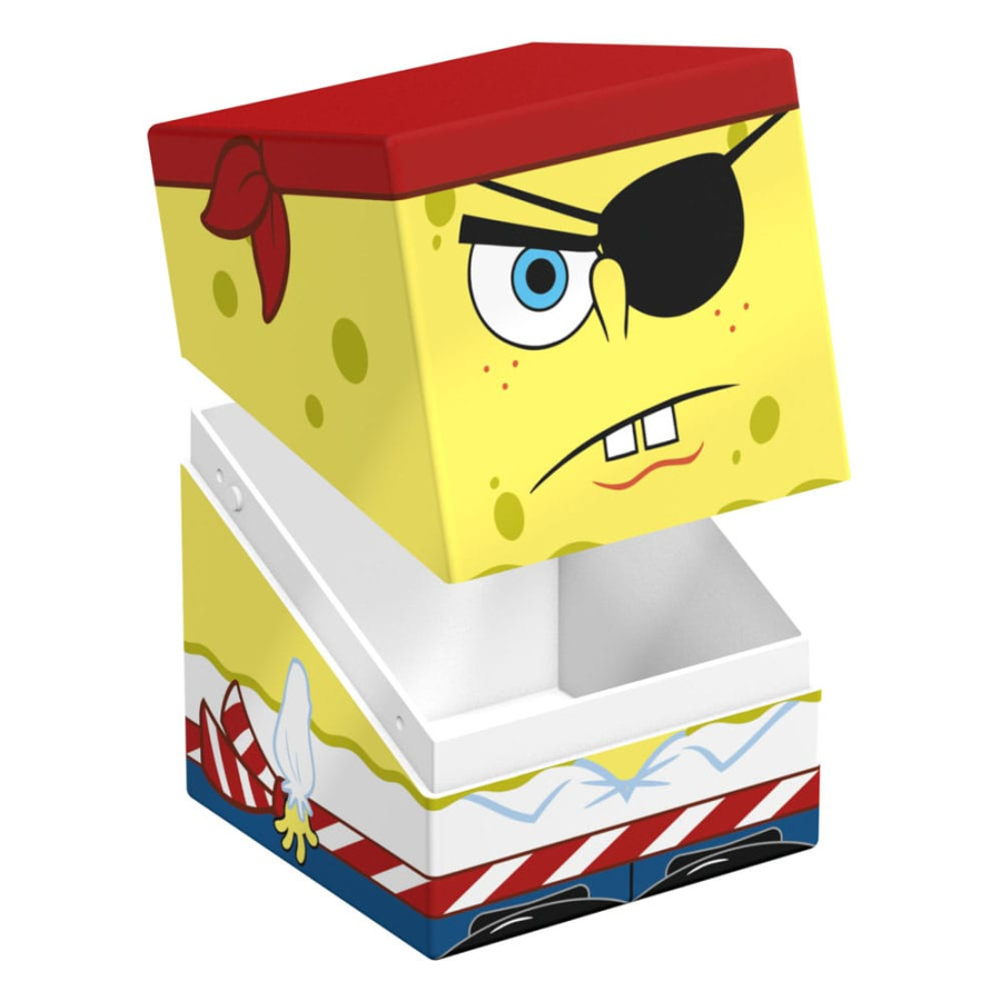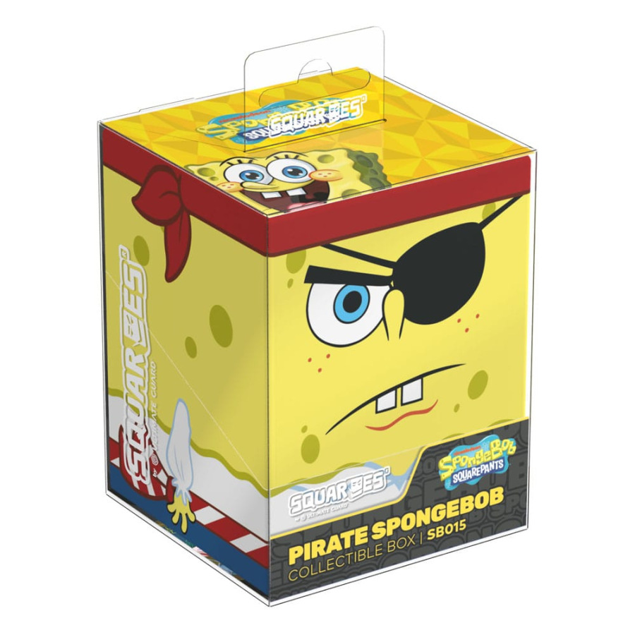 Collectible box for storing TCG decks, tabletop gaming accessories, and/or collectibles. The Pirate SpongeBob Squaroe from the SpongeBob SquarePants™ edition holds up to 100 cards in double protective sleeves if used as a deck box. Squaroes are made from 78% renewable resources and fit perfectly into the separately available Collectors Case.