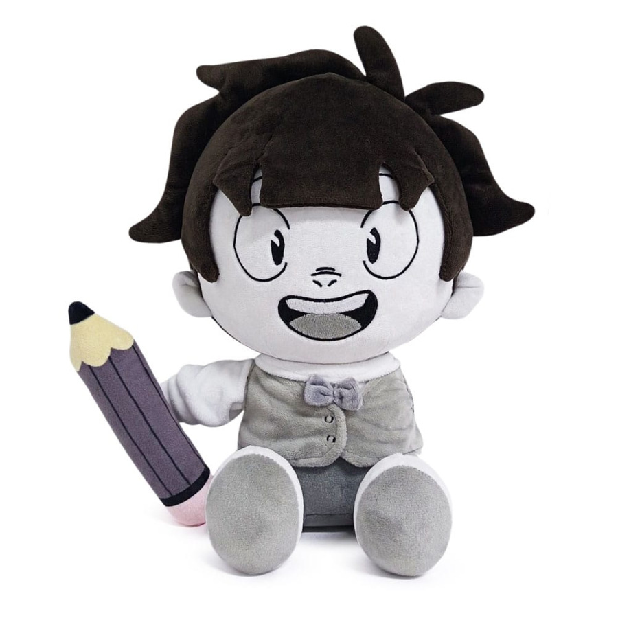Teaming up with the incredible team behind The Art of Murder, we have brought one of their titular characters to life as a Youtooz plush! OC is seated at 9 inches tall, wearing grey and white sneakers, grey pants with a grey vest over top of a white shirt. OC is missing his left arm, but in his right hand, he holds up a large pencil that is detachable from the plush! A big happy smile spreads across OC's face under an adorable, messy bowl cut. This plush is packed to the seams with 100% PP cotton and is made of the softest minky material, perfect for cuddling or solving murders with!