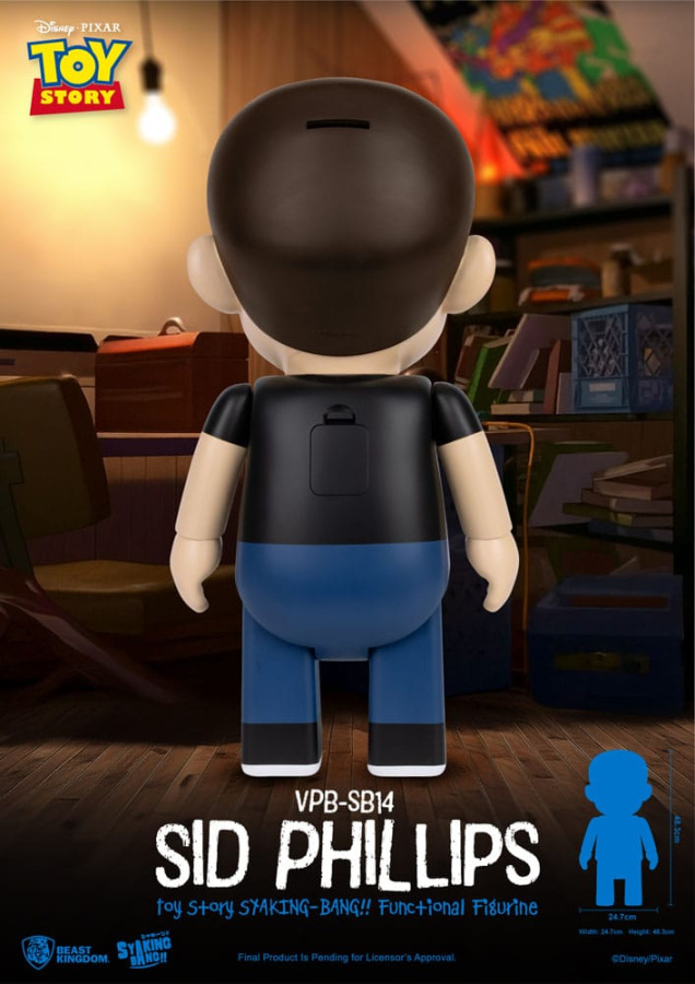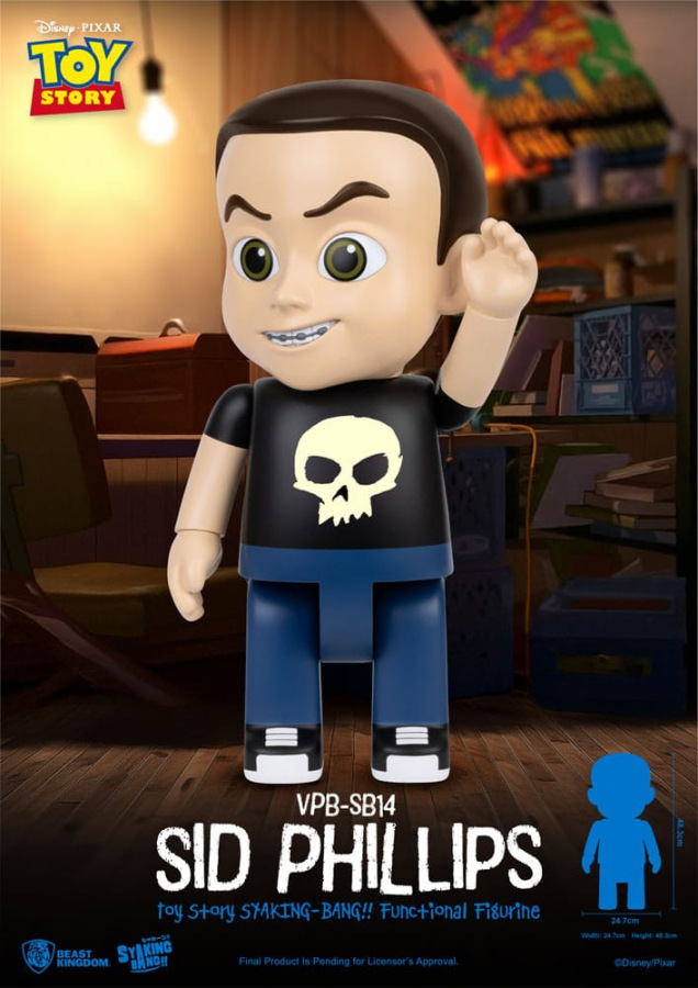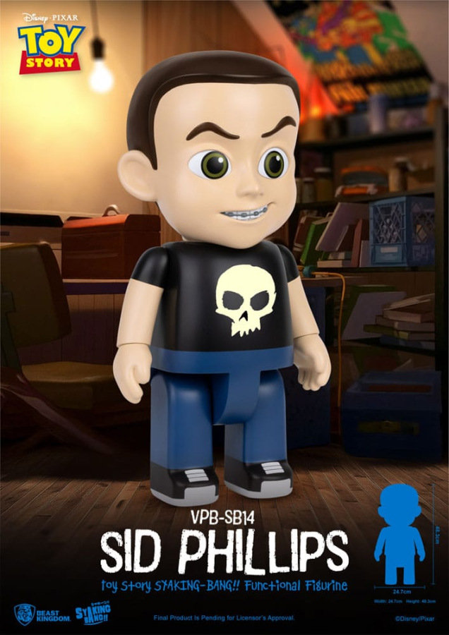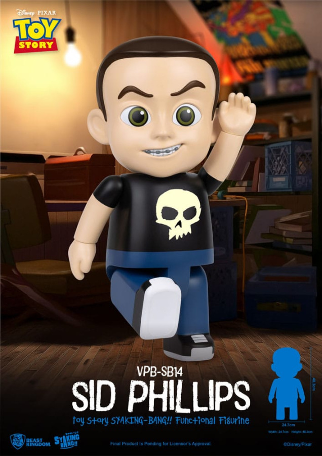 Beast Kingdom proudly presents the classic Toy Story character Sid Phillips as part of the SYAKING-BANG!! Series, standing at an impressive 48.3 cm tall. Every detail of Sid's iconic look-from his wicked grin and metal braces to his signature black skull T-shirt-is faithfully recreated with meticulous craftsmanship.
