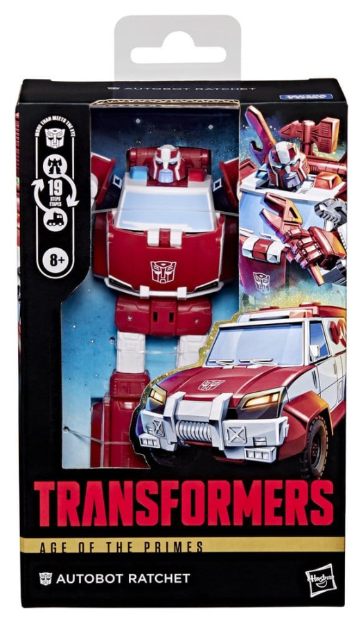 Experience the epic universe of Transformers robots with the Transformers Age of the Primes Autobot Ratchet toy! The 5.75-inch (14.5 cm) Deluxe Class figure converts from robot action figure to toy ambulance mode in 19 steps. With intricate poseability and attachable tool and blaster accessories, the Autobot Ratchet action figure makes an awesome addition to any collection. Look for more Transformers collectible toys (sold separately, subject to availability) featuring characters like Swerve, Cliffjumper, Smokescreen, and more to create a lineup that is - More Than Meets the Eye.