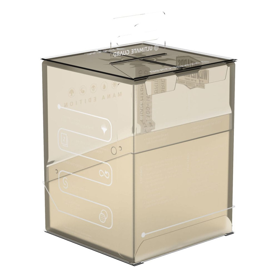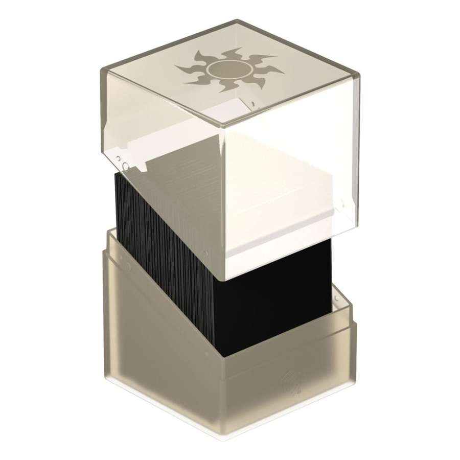 Ultimate Guard's Boulder 100+ Hybrid combines the completely transparent top of the Boulder Clear with a soft-touch base in the style of the original Boulder. The officially licensed MTG deck box is easy to open, but offers reliable protection for your cards thanks to its sturdy case and secure closure. The Boulder 100+ Hybrid holds up to 100 double-sleeved cards and is suitable for all Magic: The Gathering formats such as Commander (EDH), Standard or Modern.