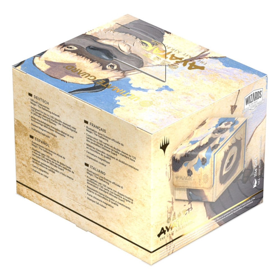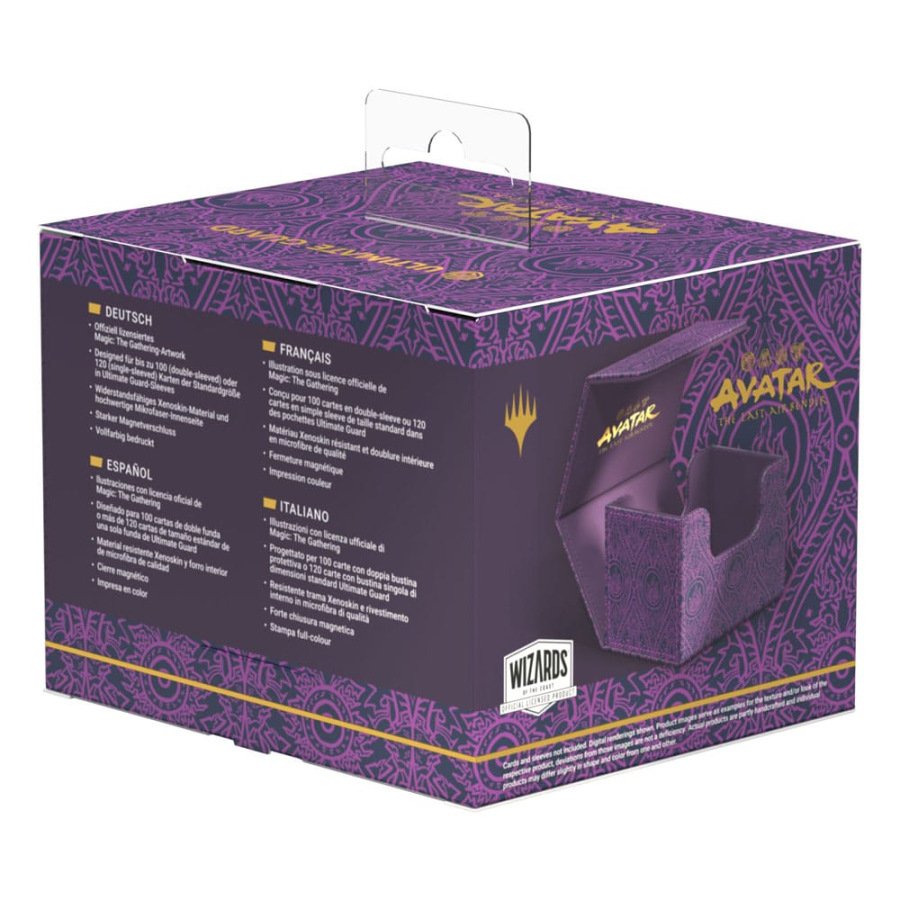The Sidewinder 100+ made from durable Xenoskin material holds up to 100 double-sleeved cards, which are kept secure in the deck box thanks to a strong magnetic closure and soft microfiber inner lining. The durable, high-quality Xenoskin surface of the Sidewinder is printed in full color with officially licensed artwork from the Magic: The Gathering | Avatar: The Last Airbender set.