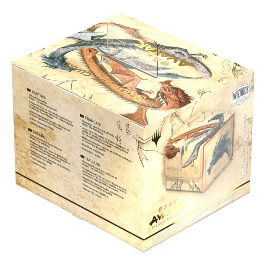 The Sidewinder 100+ made from durable Xenoskin material holds up to 100 double-sleeved cards, which are kept secure in the deck box thanks to a strong magnetic closure and soft microfiber inner lining. The durable, high-quality Xenoskin surface of the Sidewinder is printed in full color with officially licensed artwork from the Magic: The Gathering | Avatar: The Last Airbender set.