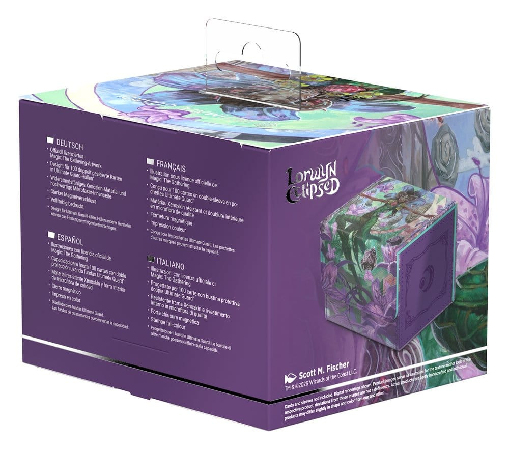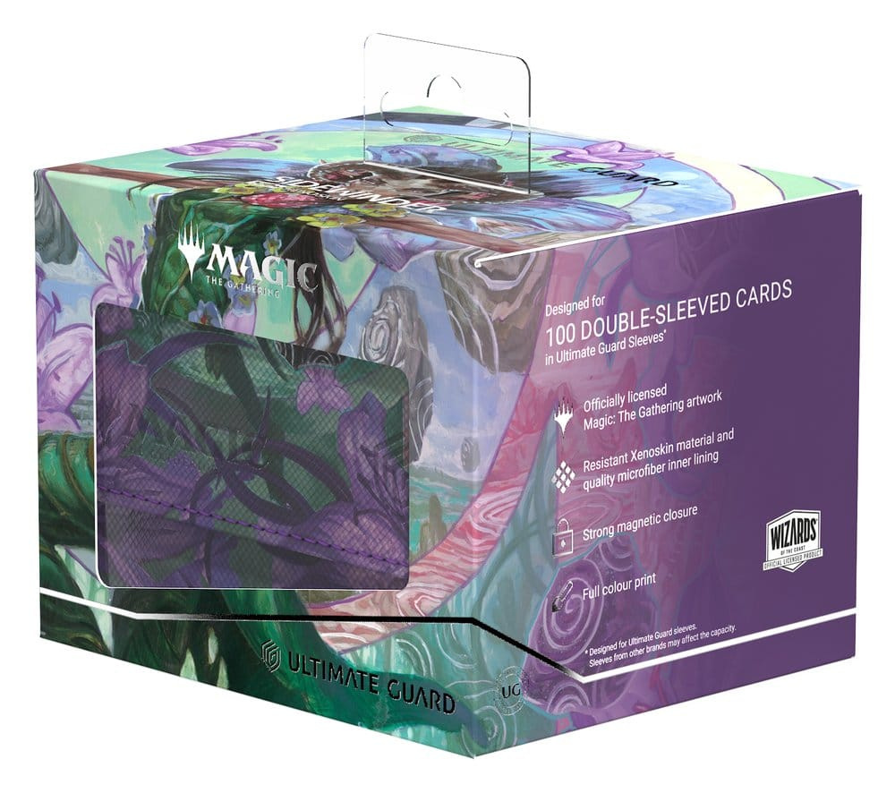 The Sidewinder 100+ made from durable Xenoskin material holds up to 100 double-sleeved cards*, which are kept secure in the deck box thanks to a strong magnetic closure and soft microfiber inner lining. The durable, high-quality Xenoskin surface of the Sidewinder is printed in full color with officially licensed artwork from Magic: The Gathering's "Lorwyn Eclipsed" set.