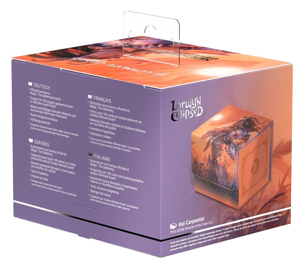 The Sidewinder 100+ made from durable Xenoskin material holds up to 100 double-sleeved cards*, which are kept secure in the deck box thanks to a strong magnetic closure and soft microfiber inner lining. The durable, high-quality Xenoskin surface of the Sidewinder is printed in full color with officially licensed artwork from Magic: The Gathering's "Lorwyn Eclipsed" set.
