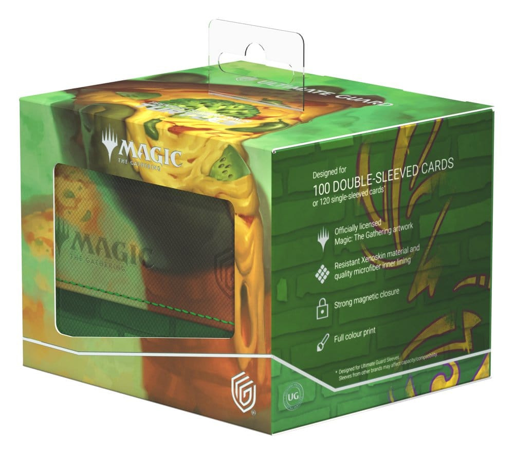 Ultimate Guard's Sidewinder 100+ Xenoskin is a premium Magic: The Gathering deck box offering exceptional card protection with its durable Xenoskin material, microfiber inner lining, and strong magnetic closure—all while providing easy and convenient access to the cards inside. With space for 100 double-sleeved cards in Ultimate Guard sleeves* and printed with officially licensed artwork from the "Magic: The Gathering | Teenage Mutant Ninja Turtles" set, the Sidewinder 100+ Xenoskin is the perfect MTG deck box for all Magic formats (Commander/EDH, Modern, Standard, etc.). Designed to combine with Ultimate Guard's Omnihive, Superhive, and Smarthive mass storage boxes.