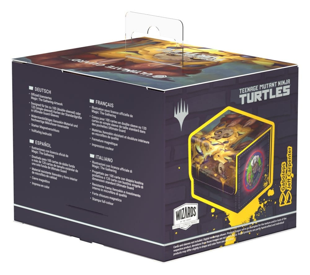 Ultimate Guard's Sidewinder 100+ Xenoskin is a premium Magic: The Gathering deck box offering exceptional card protection with its durable Xenoskin material, microfiber inner lining, and strong magnetic closure—all while providing easy and convenient access to the cards inside. With space for 100 double-sleeved cards in Ultimate Guard sleeves* and printed with officially licensed artwork from the "Magic: The Gathering | Teenage Mutant Ninja Turtles" set, the Sidewinder 100+ Xenoskin is the perfect MTG deck box for all Magic formats (Commander/EDH, Modern, Standard, etc.). Designed to combine with Ultimate Guard's Omnihive, Superhive, and Smarthive mass storage boxes.
