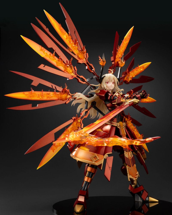While sculpted in the same scale as Sky Striker Ace - Raye and Sky Striker Ace - Roze, this piece far surpasses the previous ones in volume, making for an outstanding display. Fine details that cannot be seen on the card have been recreated with precision, such as the features in the armor, weapons, and wings on the back.
